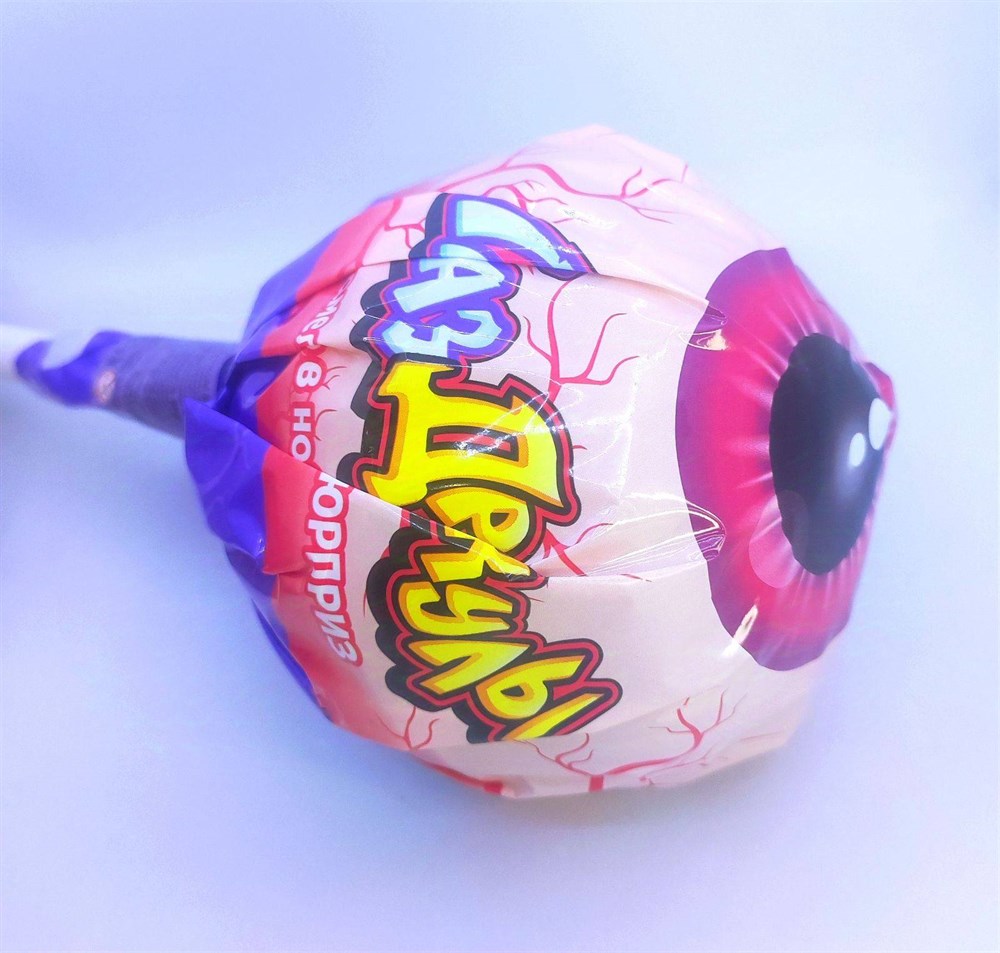 Карамель на палочке в наборе с подарком "Лизунец MAXI Глаз Дракулы" 112 гр.