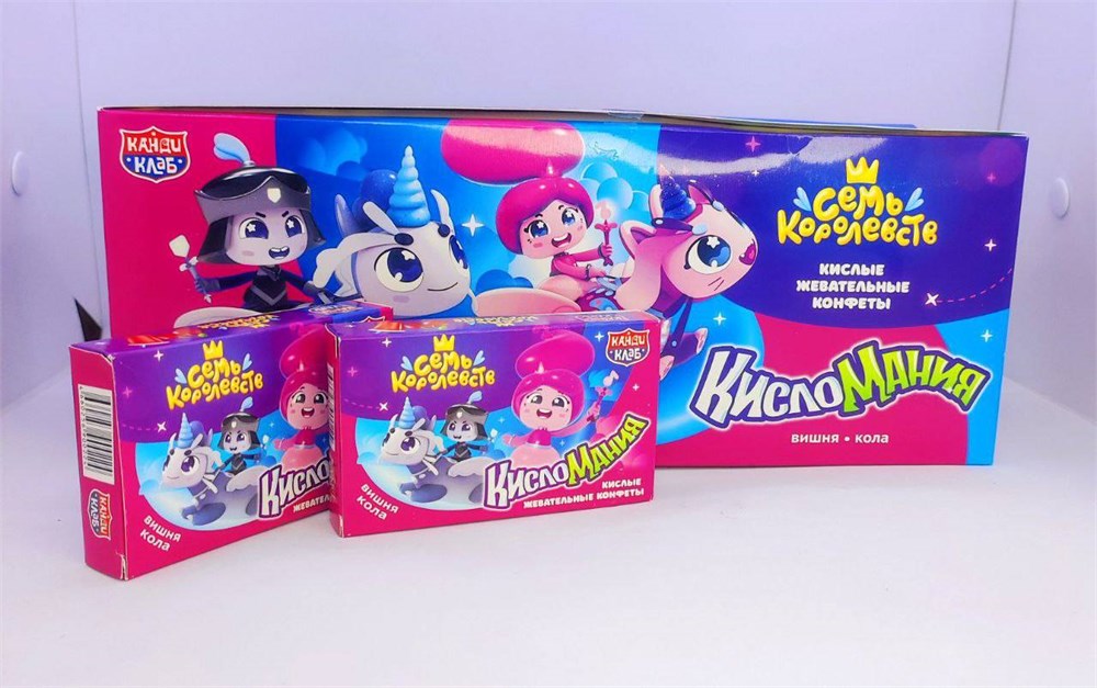 Кислые жевательные конфеты "Кисломания Дабл Фрукт" (Семь Королевств) со вкусом вишни и колы 14 гр. 30 шт. уп.
