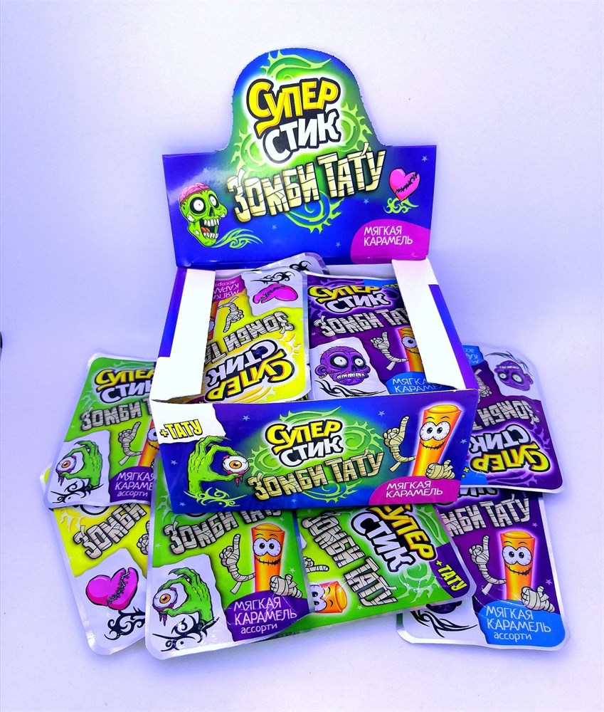Мягкая карамель "Супер стик с тату ЗОМБИ" 5 гр. 40 шт. уп.