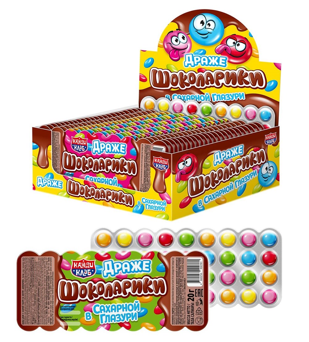 Шоколадное драже в глазури на блистере "Шоколарики" 20 гр. 24 шт. уп.