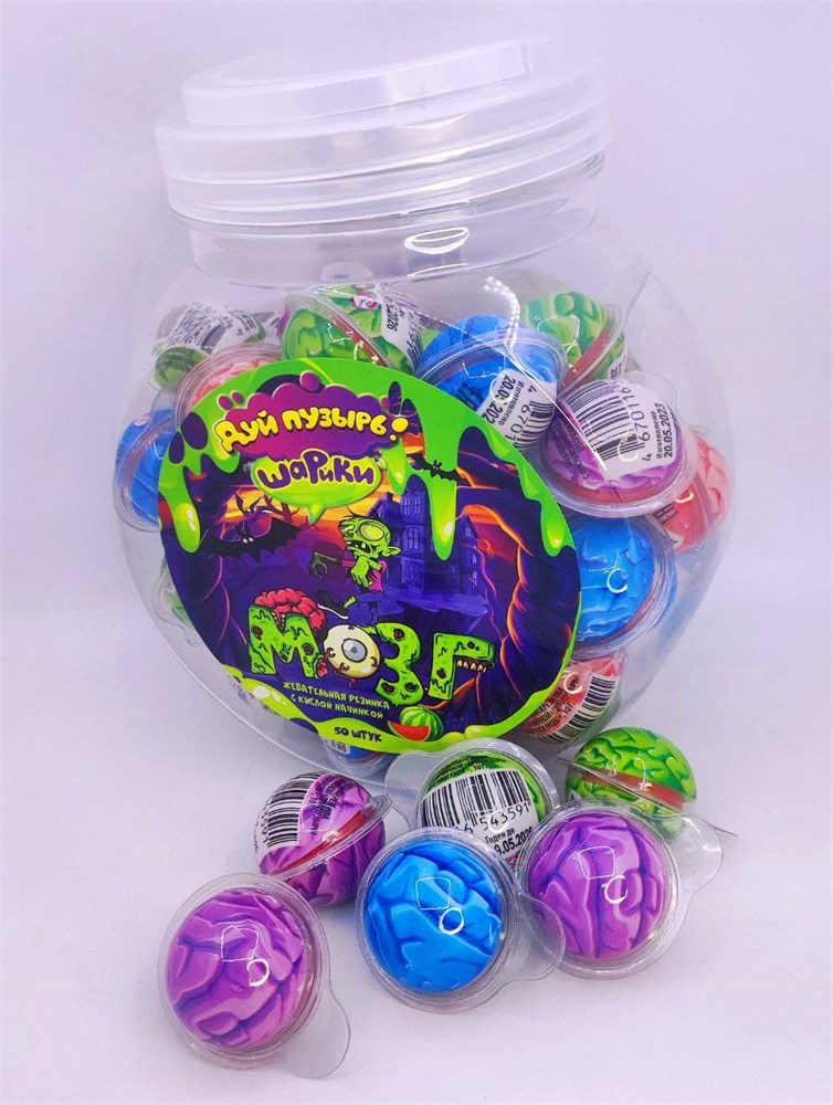 Жевательная резинка с кислой начинкой «Дуй пузырь! ШАРИКИ МОЗГ» 10 гр. 50 шт. уп.