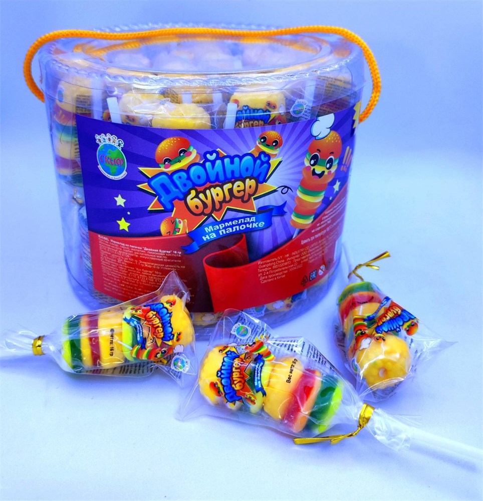Жевательный мармелад на палочке "Дабл бургер" 12 гр. 50 шт. уп.