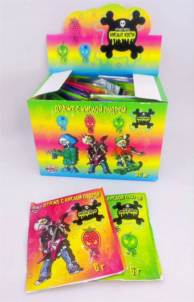Драже с кислой пудрой «Черная метка КИСЛЫЕ КОСТИ» 6 гр. 30 шт. уп.
