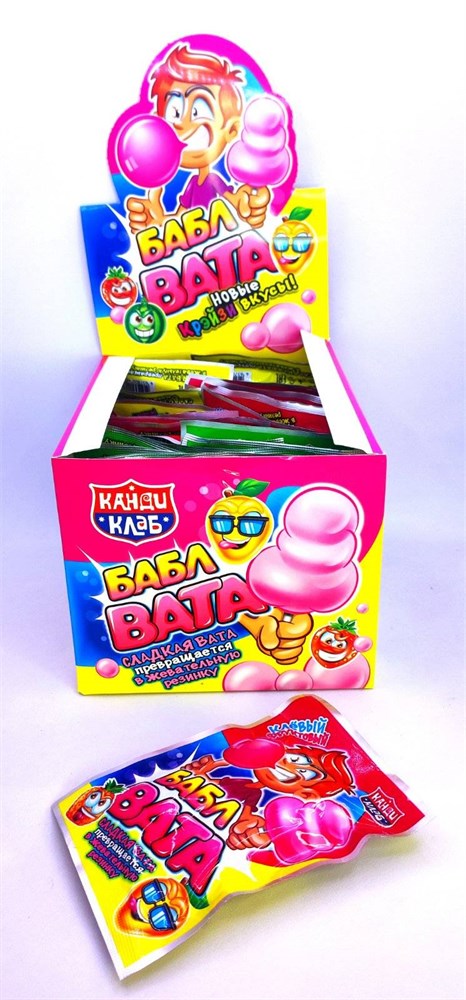Описание Сладкая вата "Бабл вата" удивит вашего ребенка своим перевоплощением из ваты в жевательную резинку, тем самым подарив двойное наслаждение