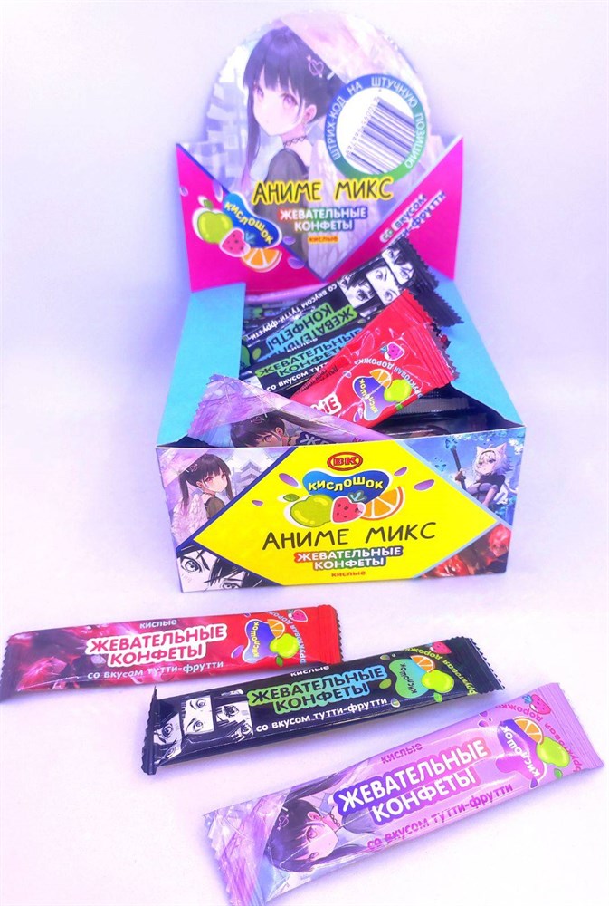 Жевательная конфета тутти-фрутти "Кислошок Аниме микс" 10 гр. 50 шт. уп.