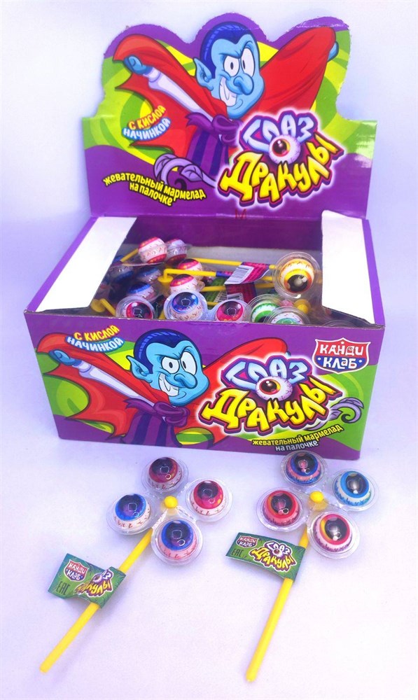 Жевательный мармелад на палочке с кислой начинкой "Глаз дракулы" 8 гр. 30 шт. уп.
